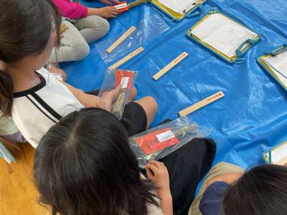 総合コミュニティかがやきの学習では、先週見学に行った役行者山保存会の方々に来ていただき、ちまき作りの体験を行いました。どういう思いや願いが込められているのかを聞きながら丁寧に作りました。健康や安全を願う内容を子どもたちも護摩木に書いていました。作ったちまきはお家に持ち帰っています。ぜひご家庭でもお話を聞いていただければと思います。