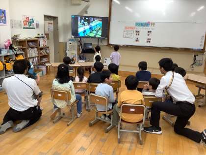 授業参観がありました。7組たんけん隊で見つけた、一人一人のお気に入りをクイズにして発表しました。お家の人にも参加してもらいながら、楽しく発表していました。
