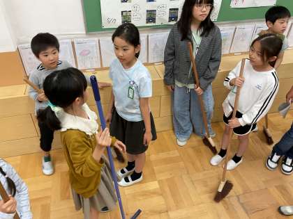 4年生 たてわり掃除スタート 公開日 2025/06/04 更新日 2025/06/04 4年生 今日からたてわり掃除がスタートしました。去年までは上のお兄さんお姉さんに来てもらう側でしたが、今年からは自分たちが下の学年の所に行って掃除を手伝いながら、親交を深めていきます。4年生は2年生のところに行っています。まずは自己紹介から!少しずつ中を深めていけるといいね♪