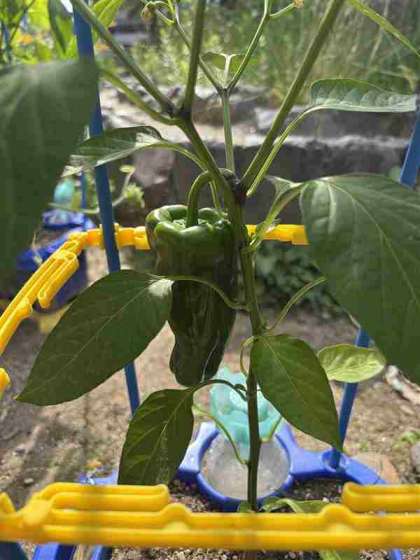 大きいピーマンを朝一番に収穫しました!