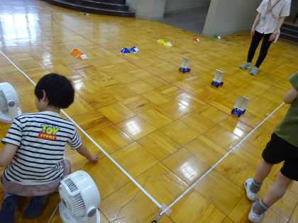 今回の学習では、風の強さによって、車の進み方はどう変わるのかを実験を通して考えました。送風機を使って、風の強さを変えて実験をしました。風の力には、どんなはたらきがあるのでしょう。次回は、実験結果から考察していきます。