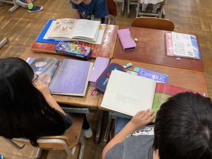 国語科の学習では「一つの花」を進めています。今回の教材は戦争が背景にあるお話です。なかなか身近に感じることは難しいかもしれませんが、教材のお話だけでなく、他の物語も読みながら理解を深めています。