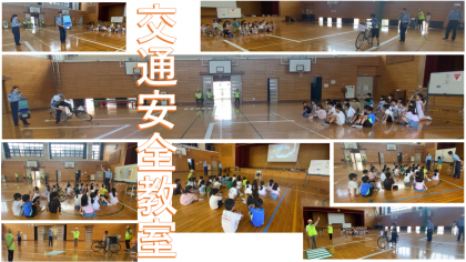 また、今週は、中京警察署の方や地域の見守り隊でお世話になっている方々にご協力いただき、交通安全教室も行いました。3年生は、基本的な交通ルールや標識について確認したあと、自転車の乗り降りの仕方や危険な事例を教えていただきました。そして最後には実際に起こった事故のケースを映像資料で視聴しました。自転車に乗っているときには「加害者」にもなってしまうことを知った子どもたちは、より一層安全の意識を高くもつことができたようです。