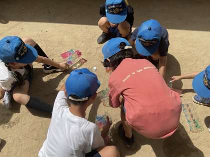 天気にも恵まれて、今日は運動場に出て太陽にあててみました。