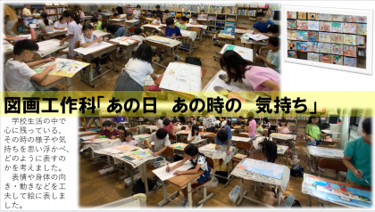 図画工作科「あの日 あの時の気持ち」の学習でも、表現活動の過程において、自分なりの思いをもち、自分で表したい思い出を選択しながら、自分なりの方法で表現していく姿が見られました。