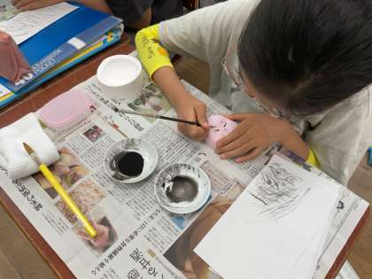 出来上がったお面の表情はそれぞれ違って個性が出ていますね!
