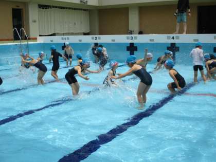 子どもたちは学習していく中で、水の中でもぐったり、浮いたり、泳いだりする楽しさを存分に感じている様子でした。
