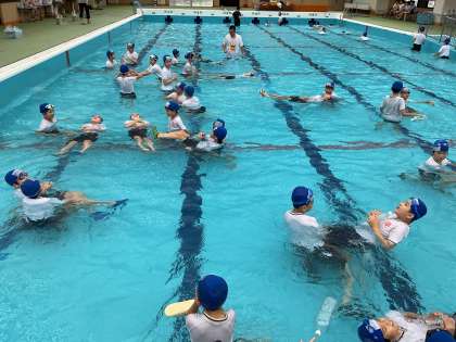 消防士である木村さんにお越しいただき、着衣泳を行いました。