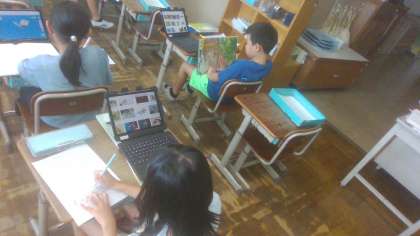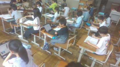 それぞれが昆虫の種類を選び、すみか、体のつくり、育ち方を図鑑やインターネットを使って調べます。運動場に虫を探しに行って実際に見る子もいます。