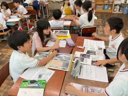 3年生では、夏休みの「わくわくわあく」一つとして、自分で見つけた 感じた「京都ならでは」に関する写真をお家の方と一緒に撮影しました。一学期の学びの中で、自分の今思う「京都ならでは」をキーワードにし、それに関する写真です。夏休み明け、各学級で、どんな写真を撮ってきたのか、交流をしました。なぜ、この写真を撮ったのか。その理由を明らかにしながら、にこやかに説明する姿が見られました。