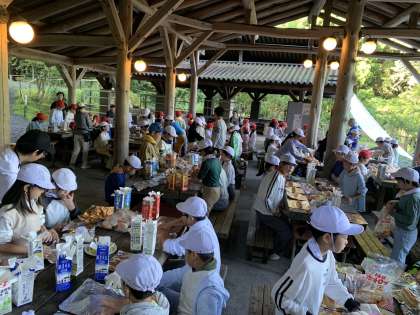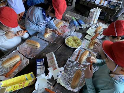 具材をパンに挟んだら、アルミホイルでしっかりと巻き、パックに詰めてかまどで焼きます。
