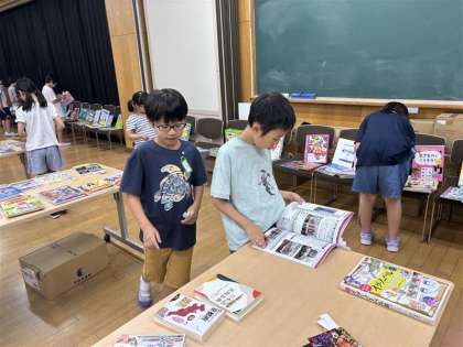 4年生が選書会に行きました。会議室いっぱいに並べられた本の中から、自分のお気に入りを選んで投票しました。初めて見る本がたくさんあって、楽しく選ぶことができました。