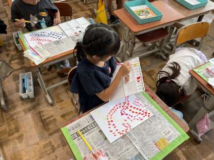新しい絵の具セットにわくわくどきどきの子どもたち。