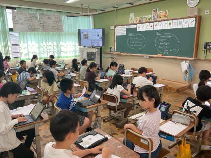 外国語活動では「Do you have a pen?」の学習を進めています。「○○をもっていますか?」という言い方を知り、友達の筆箱にはどんなものが入っていて「鉛筆もっていますか?」「いくつ?」などとやり取りをしています。
