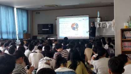 今回は、株式会社ヒューマンフォーラムの方にゲストティーチャーとして来ていただきました。1着の服を作るのに必要な水の量やその際排出されるCO2の量を、みんなの普段の生活に関わることで例えると…という話があったのですが、どちらもあまりの量の多さにみんなとても驚いていました。