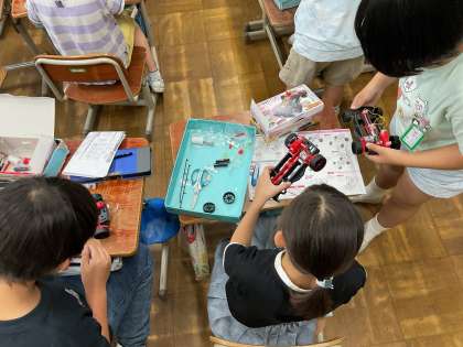 理科の学習では「電気のはたらき」で使った車のキットを完成させて、車を走らせています。電気の流れ方に気を付けてキットを組立てるとぐんぐん車が走る様子に子どもたちはとっても嬉しそうでした。また授業の中では、組立に困っている友達を手伝う姿も見られました。素敵な姿に心が温かくなります♪