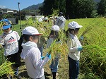 2年生と一緒に、大原へ稲刈りに行きました。春に植えた苗が大きく実り、稲を刈る手にも力が入りました。晴天にも恵まれ、楽しい活動となりました。