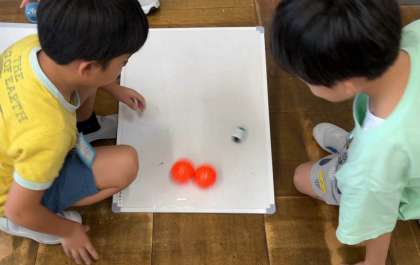 「はこの上に置いたキャップを磁石の力で動かすと、磁石相撲ができたよ!」