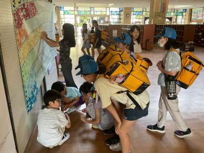 期間中、自分が見つけた友だちのきらめき(すごいところやがんばり)を星形の「きらめきカード」に記入し、友だちに伝えました。伝えてもらった友だちは、書いてもらった星を、虹の一部に添えることが出来ました。また、たくさんの子が、きらめきの虹の前で足を止めて、自分の星を探したり、いろんな学年の星に書かれていることを読んだり、温かな言葉に触れることが出来ました。