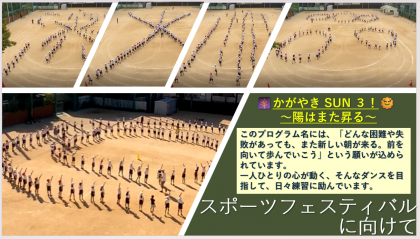 今年の3年生のリズムダンスのテーマは「かがやき SUN 3!〜陽はまた昇る〜」。