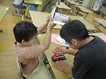 4年生は、電気の働きの学習をしています。回路を作り車を動かしたり、モーターの力で風を作ったりと、実際に触りながら学習していました。
