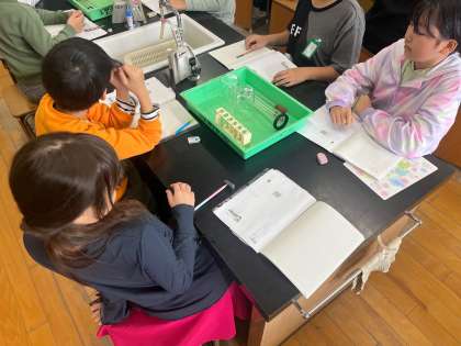 いよいよ理科室での学習が始まりました。はじめての理科室では、学習の約束や実験器具の名前などを確認しました。みんなで楽しく実験したり学習したりするために、きまりを守って学習していきたいね。