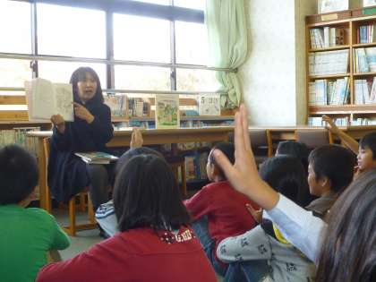 皆さんもご存じのとおり、すべての学年、学級を対象に上岡裕子さんが、本の読み聞かせをしてくださる取組です。