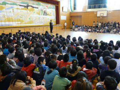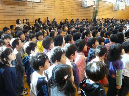 最後は6年生が「You & I」を歌いました(写真中)。この曲は、高倉小学校の6年生と一緒に京都御池中学校のOikeフェスティバルで歌った曲です。