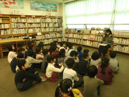 などを読んでくださいました。それぞれの役になりきった読み方,それでいてスーっとした聞きやすい語りで,子どもたちは引き込まれていました。