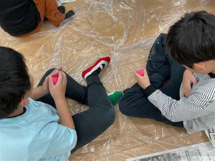 絵の具でぬたくりや粘土、ステージなどのコーナーに分かれて活動しました。