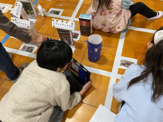 作ったおうちは、御所南のまちに並べて写真を撮りました。