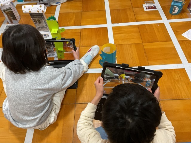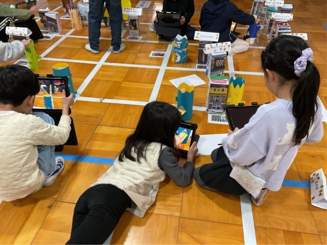 図画工作科「まどをあけたら」の学習では、カッターを使っていろいろな窓を作り、