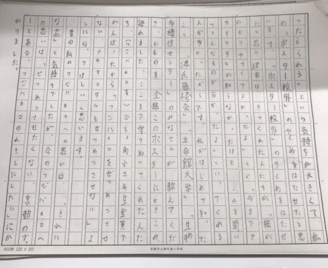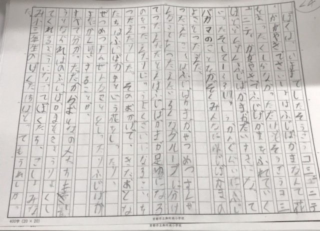 3年生の後期に取り組んできた学習が、このたび一区切りを迎えました。ひとつのテーマに向かって活動を積み重ね、様々な体験を通して、時には友達と支え合いながら学び進んできた日々。その締めくくりとして、子どもたちはこれまでの体験・経験を振り返りながら、原稿用紙に”自分の思い”をしたためました。