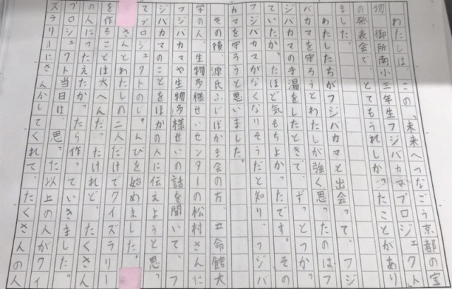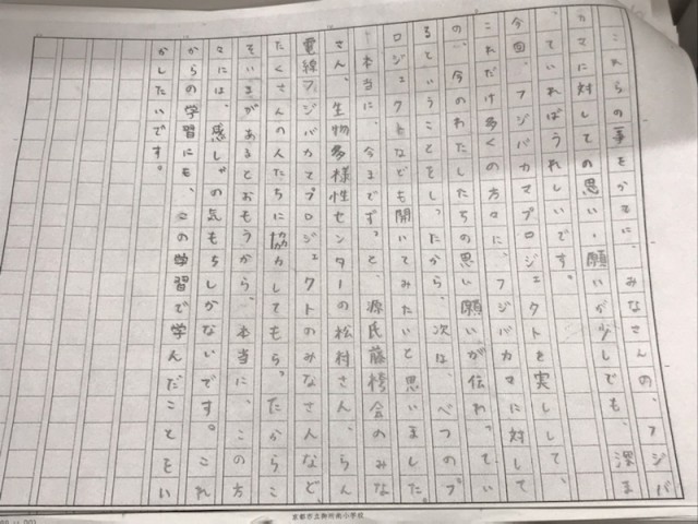 プロジェクトで積み重ねてきた日々は、きっとこれからの学びの土台となり、子どもたちの未来の背中をそっと押してくれるはずです。今回綴られた一人一人の思いが、その確かな証です。今回書き上げた文章からは、子どもたちの「やりきった」という気持ちや、「もっとこうしたい」という前向きな意欲など、たくさんの思いがあふれています。これからも、その思いを大切にしながら、学びの中でさらに輝いていく姿を応援していきたいと思います。