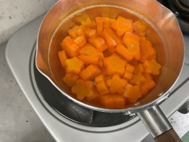 今日の給食には、クラスに1つラッキーにんじんを入れます。