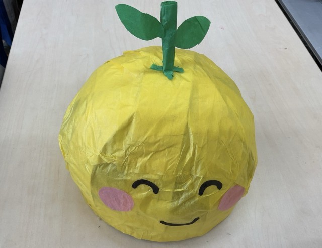 給食調理員さんが新作のゆず帽子を作ってくれました。