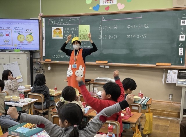 ゆずは何グループの食べ物かな・・・?今日の三色の栄養クイズは難しかったです。