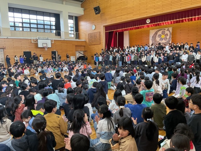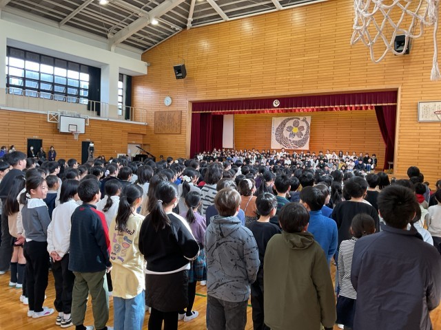 今日は6年生を送る会でした。4年生からは、6年生との思い出や感謝の気持ちを替え歌にしてお祝いしました。どの学年からも、素敵な歌や寸劇などが贈られ、体育館が温かく、和やかな雰囲気でいっぱいでした。来年は5年生、校舎最高学年です。今日の5年生や6年生の姿を目指したいですね。