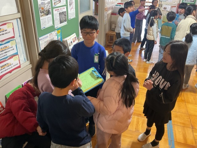 スマイル委員会企画のたてわりラリーが行われました。4年生は2年生と一緒に宝を探しに学校を探検をしました。たてわり読書の時も和やかな雰囲気でしたが、今日は前よりももっと仲が深まったような様子が見られました。一緒に手をつないだり、じゃんけんをしたりと、楽しい時間を過ごすことができました。たてわりの行事はこれで終わりですが、来年学年が変わってもまた出会ったら挨拶をしたり、話をしたりできるといいね♪