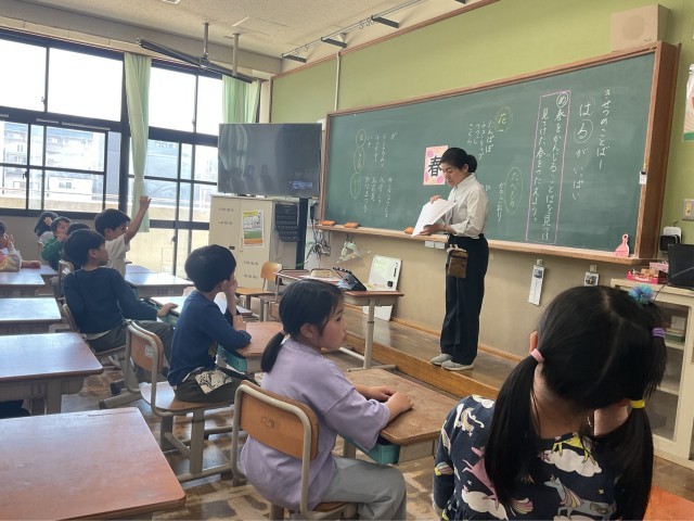 国語科「春がいっぱい」の学習では、子どもたちが春を感じる言葉をたくさん集めました。身の回りの自然や出来事に目を向けながら、「さくら」「てんとう虫」「入学式」など、思い思いの言葉を見つけることができました。学習の最後には、「カラフルな春」「楽しい行事がたくさんな春」と一人一人ちがった春の感じ方を楽しみながら、意欲的に取り組んでいました。