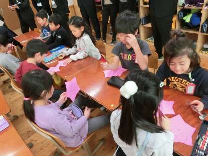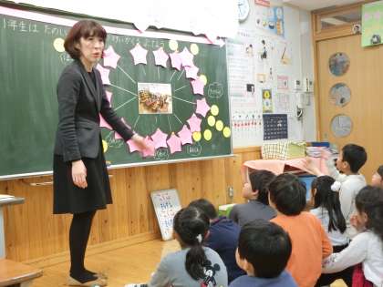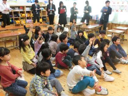 1年生の生活科の授業を教職員みんなで参観して,学び合う機会を設けました。