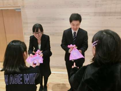 式の中には「記念品授与」の場がありました。どんな記念品なのかなと思っていたら,担任それぞれから,子どもたちへのメッセージカードでした。子どもたちも,プレゼントのようなふくろを受け取り,「何だろう」と興味津々のようです。