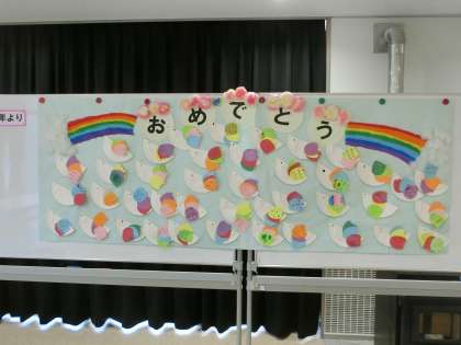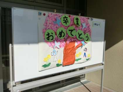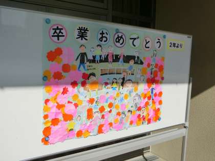 卒業式3 公開日 2020/03/24 更新日 2020/03/24 学校の様子 各学年の心のこもった「おめでとう」掲示です。臨時休校前の少ない時間の中で取り組み,各学年の担任の先生方が仕上げてくれました。