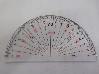 この写真に写っているものは「分度器」といいます。何のために使うものでしょう?算数の教科書を開いてみると,使い方が載っていますよ。4年生の算数科の最初の単元で学びます。
