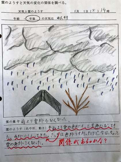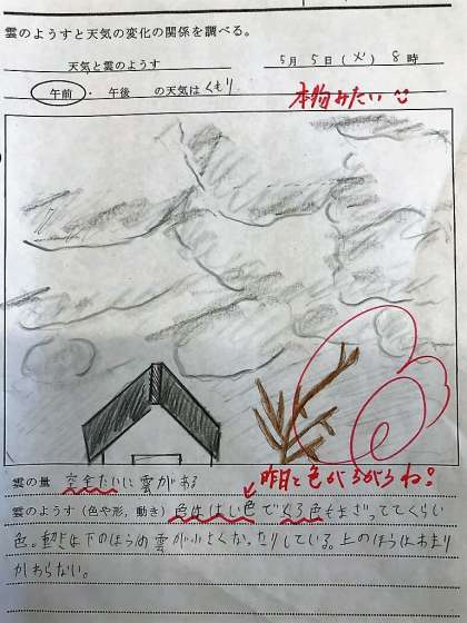 「雲のようすと天気の変化には関係があるのかな」という課題を解決するために,ゴールデンウィーク中に天気と雲のようすを観察しましたね。