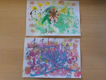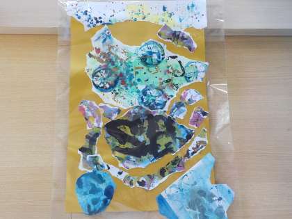 今回,チャレンジ学習として,図画工作の「絵の具でゆめもよう」を渡していました。前にホームページで絵の具をつかったいろいろな表し方を紹介していましたが,お家でやってみた人はいますか?