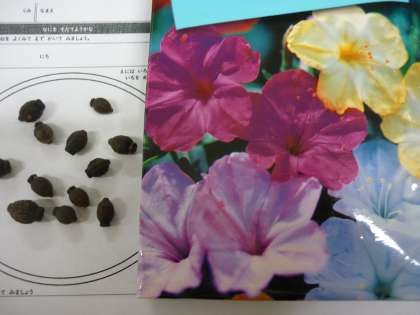 おはな くいずの こたえ 2(1ねんせい) 公開日 2020/05/15 更新日 2020/05/15 1年生 1まいめの しゃしん これは,おしろいばなの たねです。 2まいめの しゃしん これは,まりいごうるどの たねです。 どちらも きれいな おはなが さくんですね。