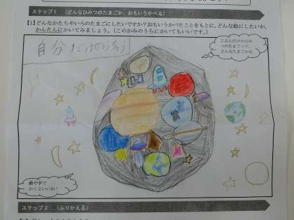 今回,「ひみつのたまごを想像してかいてみよう」という図画工作の課題を出しました。
