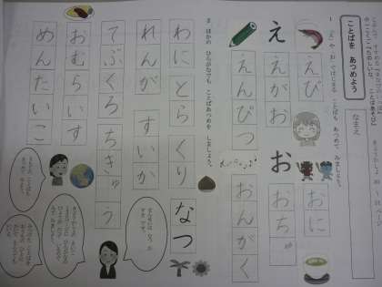 かだい ぷりんと2で あ,い,うの ことばを あつめましたね。