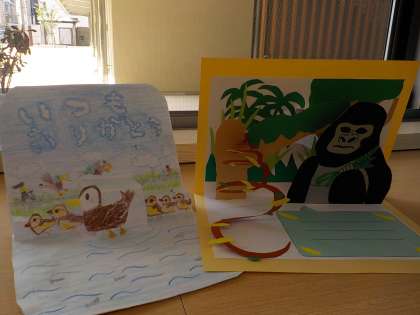 動いたり飛び出したりする仕組みを使っているので,カードを開くとびっくり!とても楽しい気分になるカードです。こんな素敵なカードを渡してもらった人は,幸せな気持ちになるでしょうね!先生たちも,とても幸せな気持ちになりました。